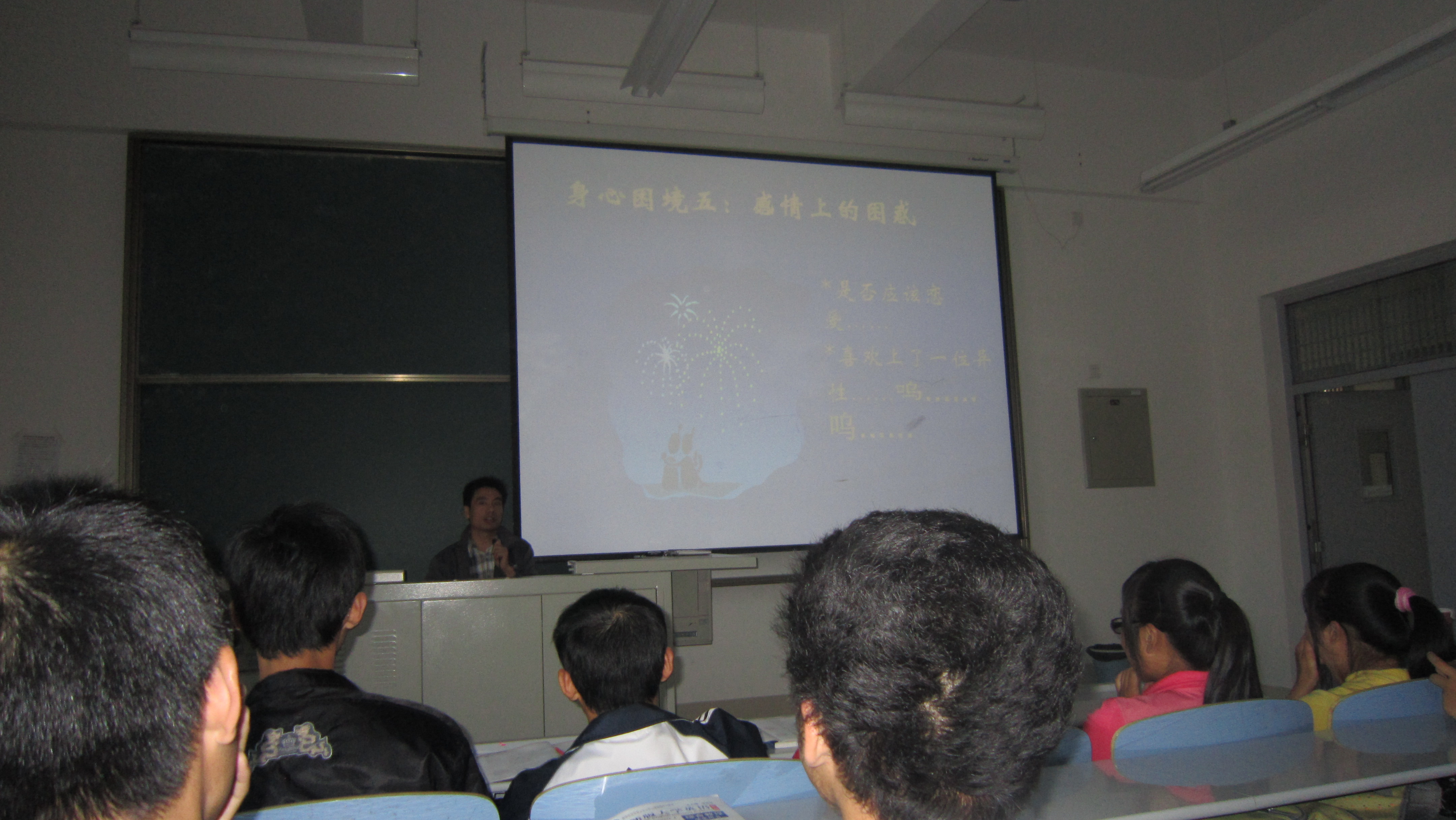 2011年10月17日下午1点,轨道交通学院在一教B205教室成功举办了大学新生心理健康问题专题讲座。讲座针对轨道交通学院2011级新生,由学生工作负责人、校心理咨询讲师团王乐全老师主讲。